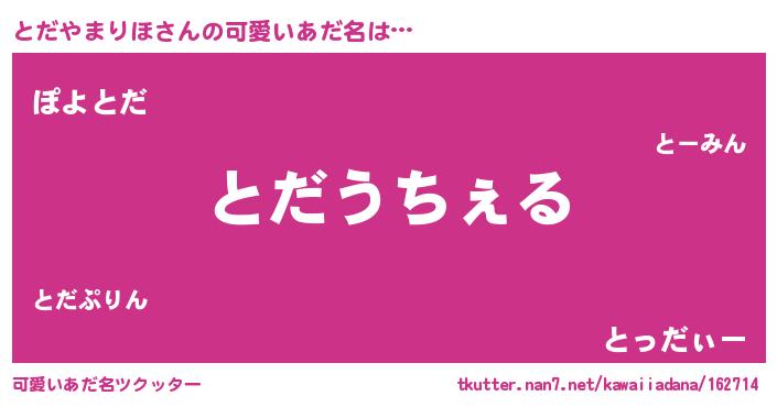 | 恥ずかしいあだ名 | 『トダヤマリホデラックス』『とだっちょ』 |