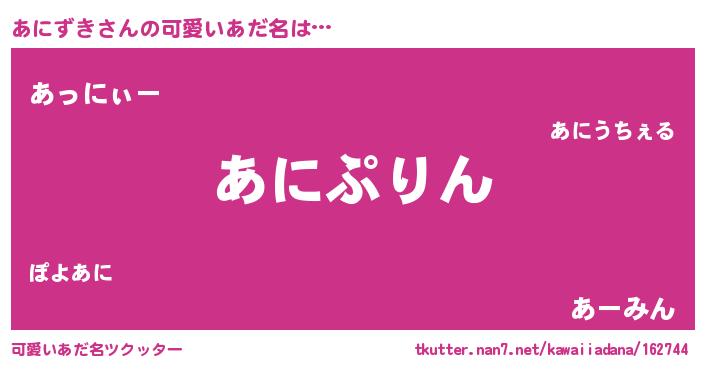 | 男性向けラノベタイトル風あだ名 | 『アニズキスレイヤー』 |