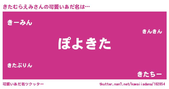 | 恥ずかしいあだ名 | 『きたっちょ』『プリティーきたむらえみ』 |