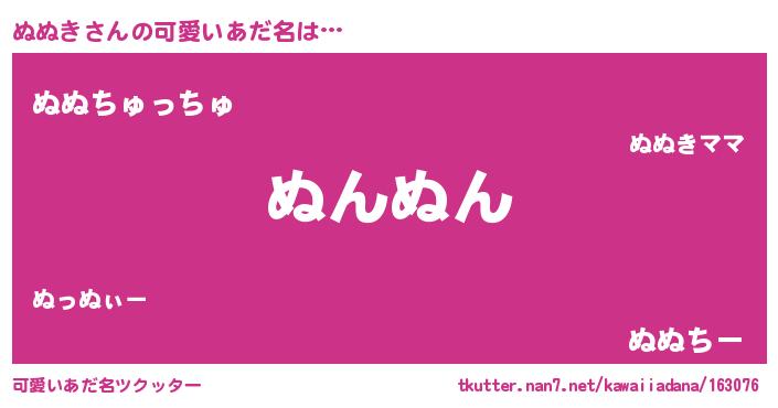 | ポケモン風あだ名 | 『ヌヌチュウ』『ヌックウザ』 |