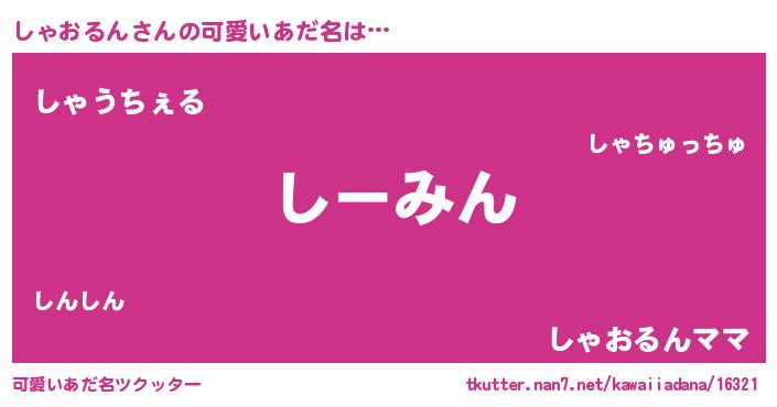 | 意味不明あだ名 | 『自称しゃおるん』『永久保存しゃおるん』 |