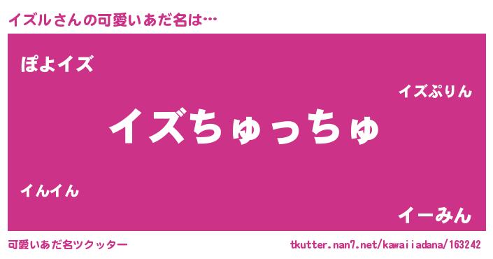 | ヘコむあだ名 | 『イズもー』『酢こんぶ』『イズ太郎』 |