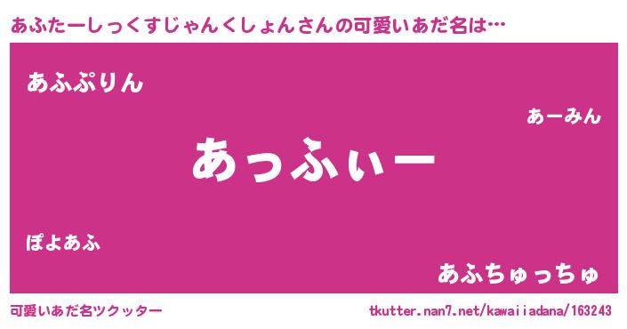 | ヘコむあだ名 | 『あふを』『あふにー』『豆乳』 |