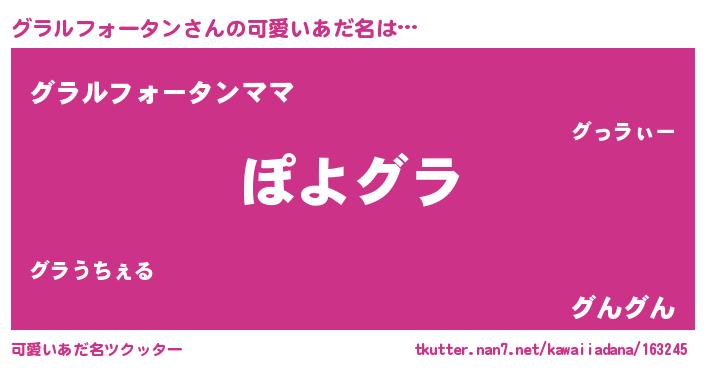 | ヘコむあだ名 | 『グラルフォータン(小並感)』『グラふぇ~』 |