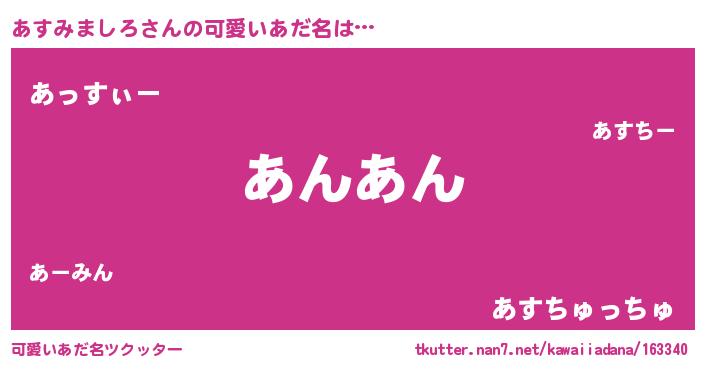 | 恥ずかしいあだ名 | 『プリティーあすみましろ』『あすっちょ』 |