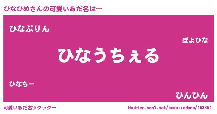 | 恥ずかしいあだ名 | 『ヒナヒメデラックス』『ひなっちょ』 |