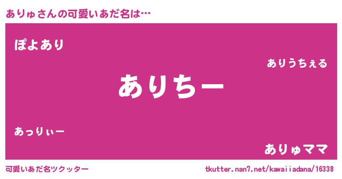 | 女子向けラノベタイトル風あだ名 | 『ありゅの雑貨屋さん』『闇のありゅ』 |