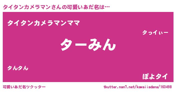 | 胡散臭い通販商品みたいなあだ名 | 『来世でも幸せになれる健康食品…その名も「タイタンカメラマン」』 |