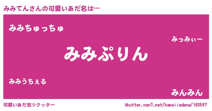 | 意味不明あだ名 | 『めかぶ科みみてん属』『自称みみてん』 |