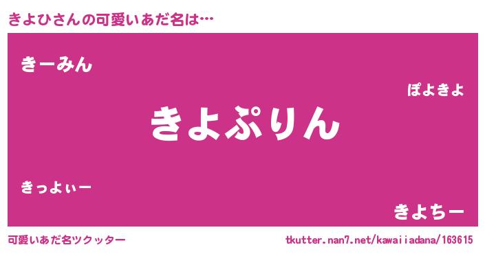 | 男性向けラノベタイトル風あだ名 | 『きよひ~年齢イコール彼女いない歴の魔法使い~』 |