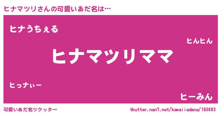 | 意味不明あだ名 | 『永久保存ヒナマツリ』『自称ヒナマツリ』 |