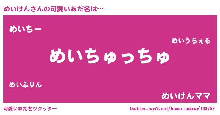| 恥ずかしいあだ名 | 『ボンバーヘッドめい』『めいっちょ』 |