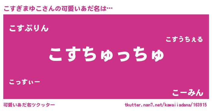 | ヒーロー風カッコイイあだ名 | 『慈愛の使者こすぎまゆこ』 |
