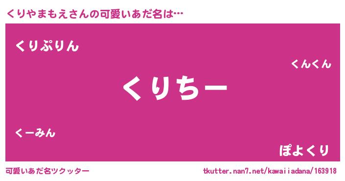 | 恥ずかしいあだ名 | 『くりっちょ』『プリティーくりやまもえ』 |