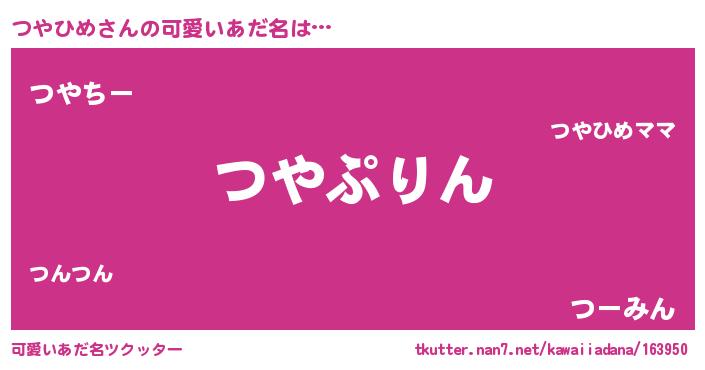 | ヒーロー風カッコイイあだ名 | 『ウルトラつやひめマン』『ネオツヤヒメ』 |