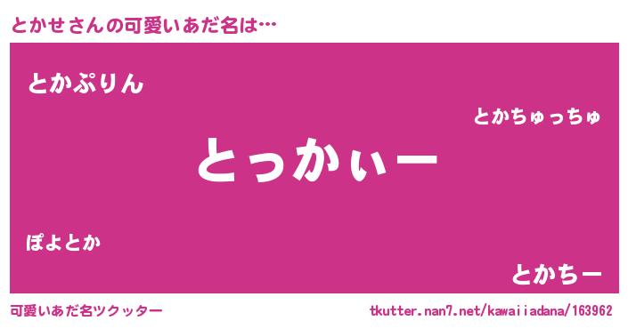 | ヘコむあだ名 | 『とかっぺ』『牛乳』『とかせ(笑)』 |