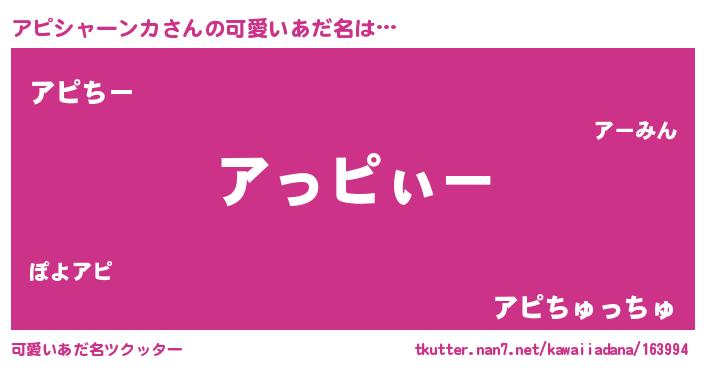 | 意味不明あだ名 | 『とにかく怪しいアピシャーンカ』 |
