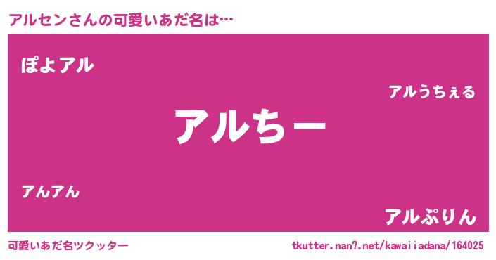 | 女子向けラノベタイトル風あだ名 | 『アルセンの雑貨屋さん』『闇のアルセン』 |