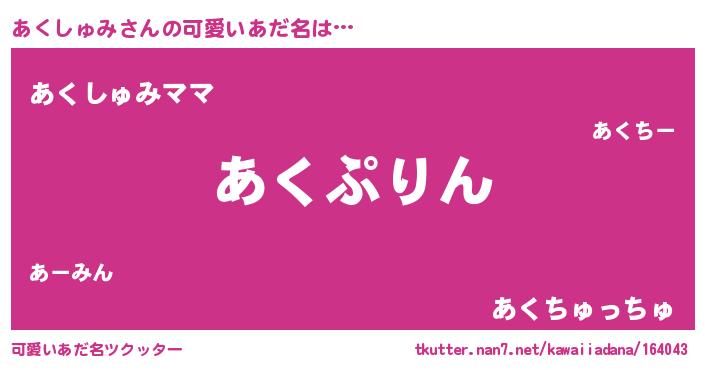 | ヘコむあだ名 | 『あくしゅみ(苦笑)』『レバニラ』 |