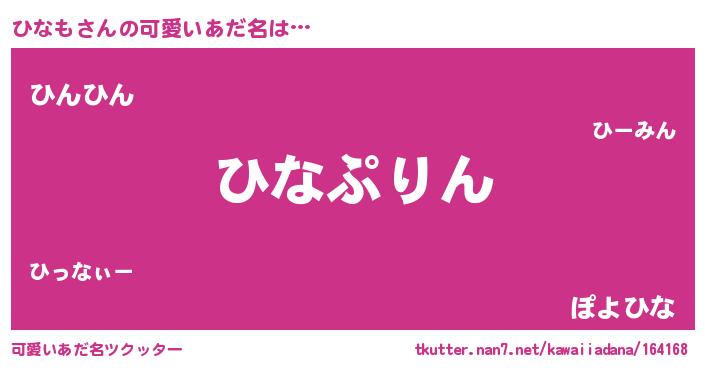 | 恥ずかしいあだ名 | 『プリティーひなも』『ヒナリンリン』 |