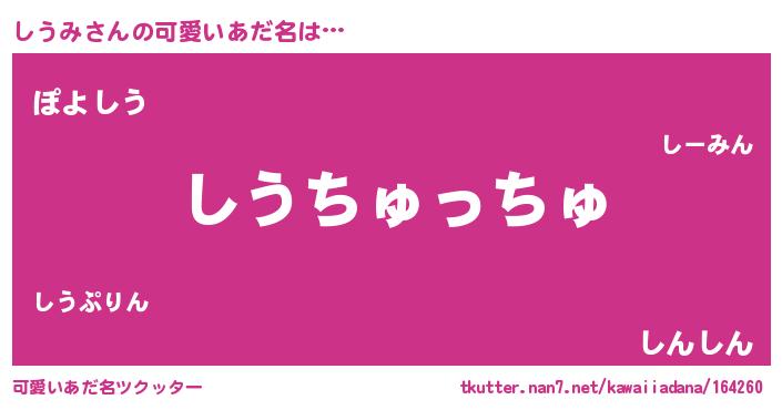 | 意味不明あだ名 | 『眠気覚ましガムしうみ味』『自称しうみ』 |