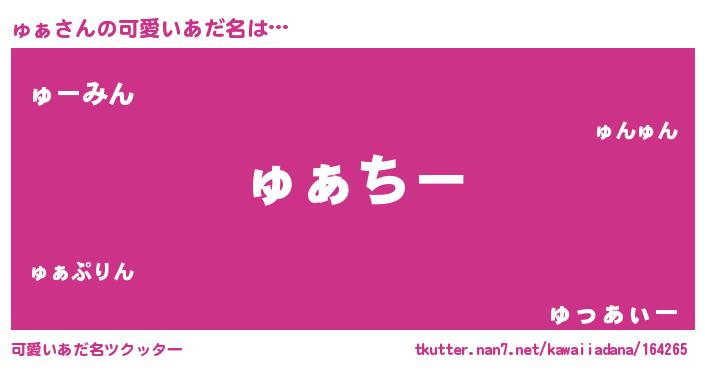 | 女子向けラノベタイトル風あだ名 | 『ゅぁの雑貨屋さん』『ゅぁ様がみてる』 |