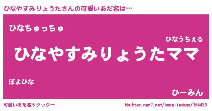 | 意味不明あだ名 | 『永久保存ひなやすみりょうた』 |