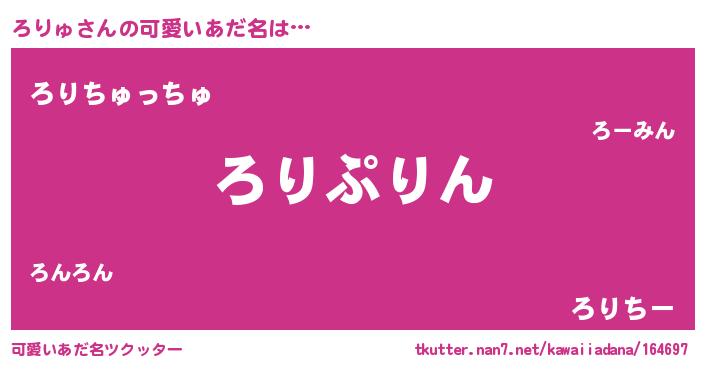 女子向けラノベタイトル風あだ名 | 『ろりゅの玉の輿計画!』 |