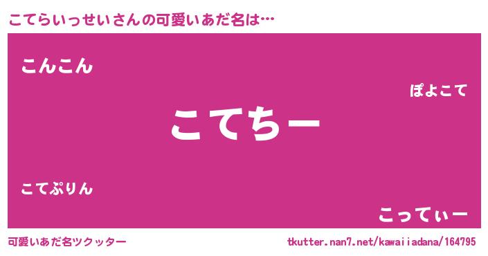 | 自動車の名前っぽいあだ名 | 『コクア』『コテティマ』『コント』 |