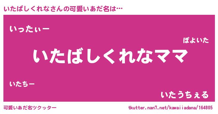 | ヘコむあだ名 | 『いたばしくれな(遠い目)』『いたを』 |