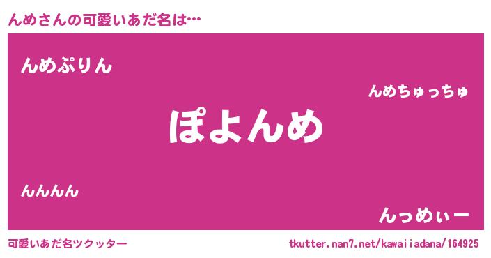 | ヘコむあだ名 | 『んめぷりん』『んめっふぃ~』 |