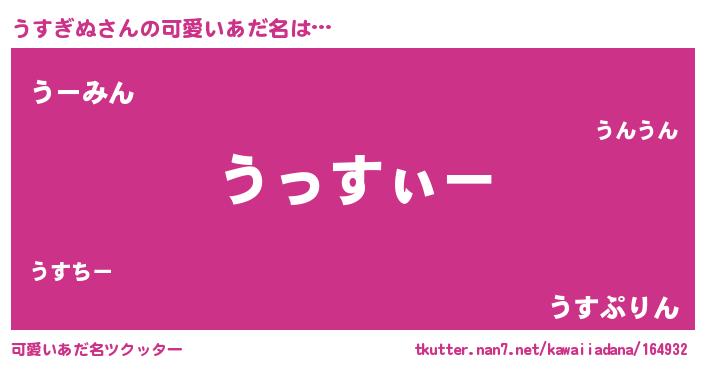 | 意味不明あだ名 | 『とにかく怪しいうすぎぬ』 |