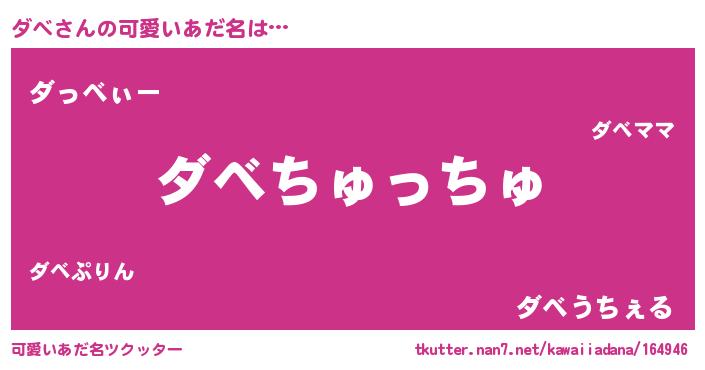 | 女子向けラノベタイトル風あだ名 | 『ダベ夫妻のなれそめ』『ダベの契約王妃』 |