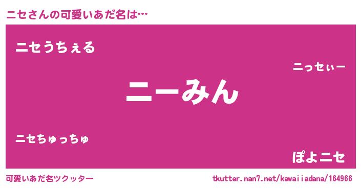 | 女子向けラノベタイトル風あだ名 | 『シンデレラニセ家の靴箱館』『闇のニセ』 |