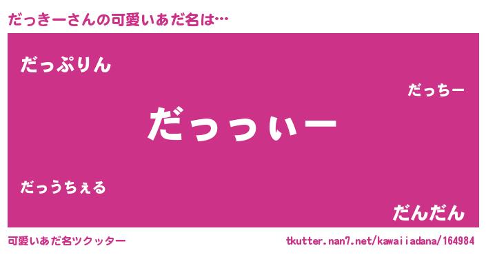 | 男性向けラノベタイトル風あだ名 | 『ダンジョンにだっきーを求めるのは間違っているだろうか』 |