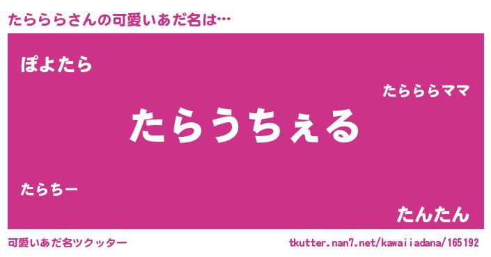 | 意味不明あだ名 | 『自称たららら』『ペロリンたららら』 |