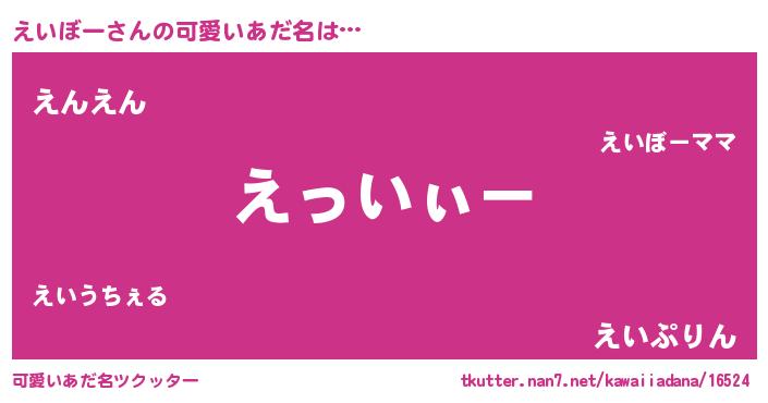 | 意味不明あだ名 | 『とにかく怪しいえいぼー』 |