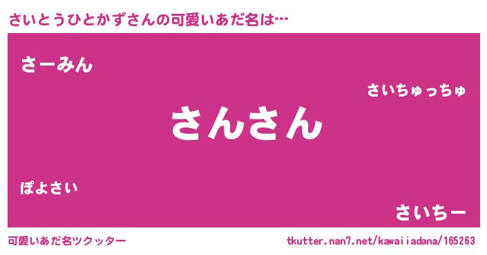 | ヒーロー風カッコイイあだ名 | 『スーパーサイトウヒトカズ』 |