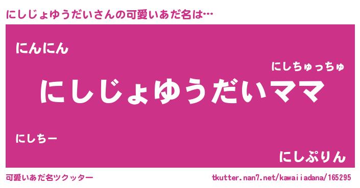 | ヘコむあだ名 | 『にしじょゆうだい(笑)』『にしもー』 |