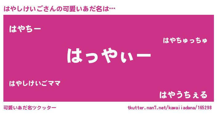 | ポケモン風あだ名 | 『ヒハヤシケイゴ』『ハヤシダネ』 |