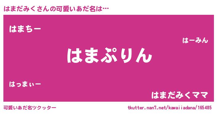 | ヘコむあだ名 | 『豆乳』『はまだみく(笑)』『はまお』 |