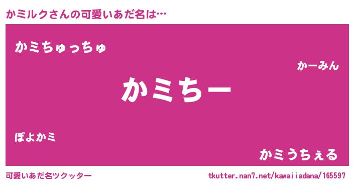 | 女子向けラノベタイトル風あだ名 | 『かミルク伯爵の花嫁』『かミルク恋絵巻』 |