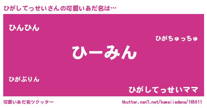 | ヘコむあだ名 | 『ひがっふぃ~』『ひがしてっせい(苦笑)』 |