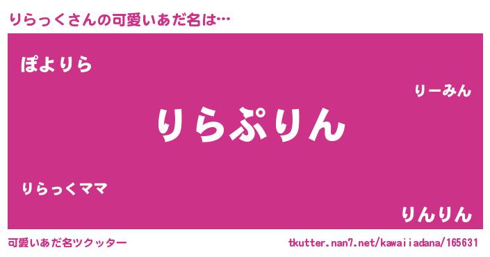 | ヘコむあだ名 | 『りらにー』『りらっく(笑)』 |