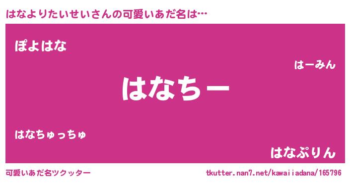 | ヘコむあだ名 | 『豆乳』『はなふぇ~』『はなっちょ』 |