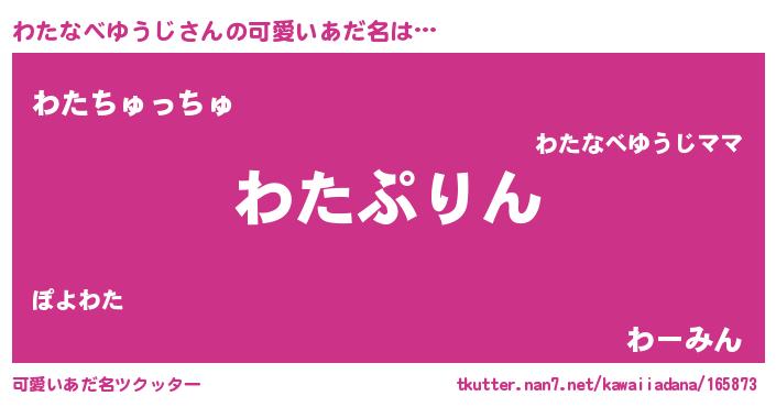 | 男性向けラノベタイトル風あだ名 | 『わたなべゆうじ~年齢イコール彼女いない歴の魔法使い~』 |