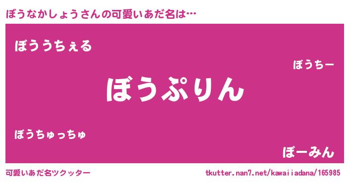 | 料理風あだ名 | 『ぼうなかしょうごはん』 |