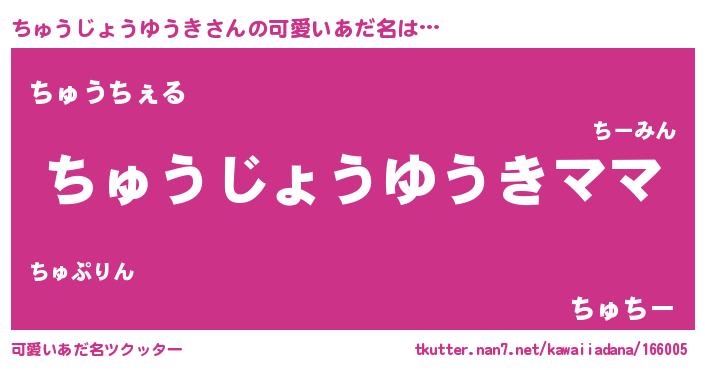 | 男性向けラノベタイトル風あだ名 | 『ちゅうじょうゆうきという概念が存在しない退屈な世界 』 |