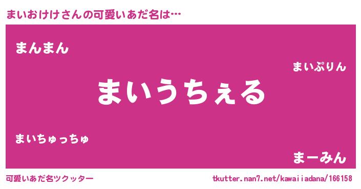 | 男性向けラノベタイトル風あだ名 | 『Re:まいおけけから始める異世界生活』 |