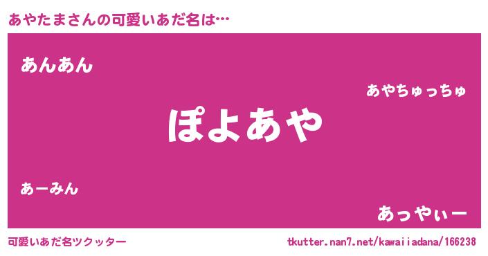 | 恥ずかしいあだ名 | 『プリティーあやたま』『アヤリンリン』 |